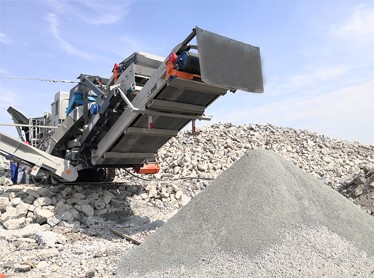 生产线使用DMI-100RSX履带移动反击式破碎筛分一体机。主机采用高耐磨材料、大破碎腔,使其进料粒度大,产品稳定,产量高、粒形好。破碎机后架由液压开启,便于检修维护。其标准配置为外接电源型,简单高效,可靠性高,设备维护和运行成本大幅降低。尤其是采用外接电源型理念,相比柴油机型节约燃料成本可达25%以上。其最新的履带移动式破碎筛分一体化设计,使设备抵达现场即可马上投产,并快速产出几种不同成品料,可谓多快好省、性能出众。