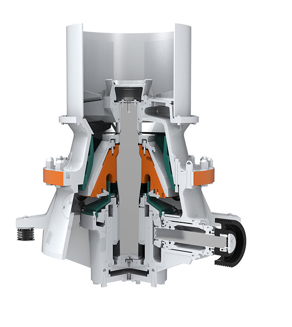 该设备核心优势突出,适配高要求破碎场景:一是腔形适配性强,仅需更换定锥,即可实现多种腔形的中细碎作业,灵活匹配不同生产需求;二是防护与润滑可靠,搭载程序控制的液压与润滑系统,有效实现过载保护,保障轴承良好润滑,延长设备使用寿命;三是结构简洁紧凑,通过底部单缸设计,一体化完成排料口直接调节、预防过铁、清腔三大核心功能,无需外置排料口调节机构及外部液压缸、弹簧防过铁装置,简化结构的同时便于运维。